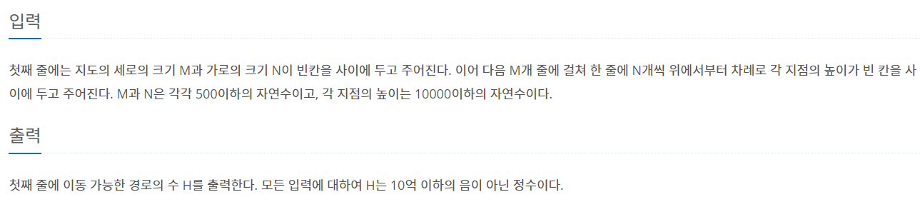 [백준][1520번][DP] 내리막길