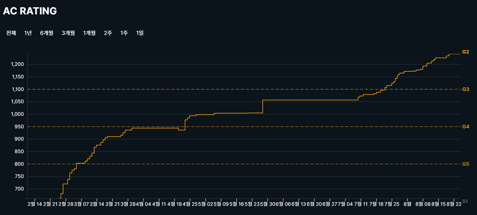 AC RATING을 보니 살짝 정체기도 있었지만 꾸준히 상승하고는 있네요.