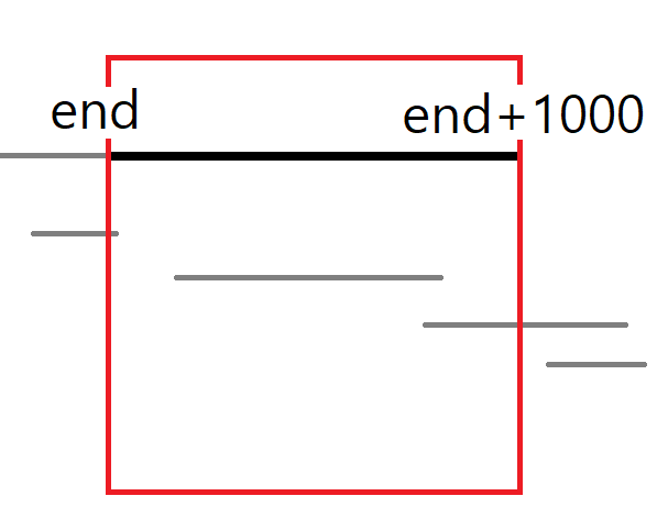 만약 end, end+1000이라는 구간이 있을때 가능한 케이스는 아래와 같다.