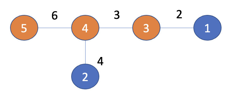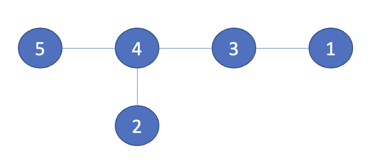 그런데 이렇게 세운다고 달라지지가 않았다. 더이상 고민하는게 무의미하여 찾아보니 아무 노드나 잡고 가장 먼것을 찾아본다. 그럼 지름의 끝 노드를 찾을 수 있었다. 만약 3번 노드에서 시작하는 경우 DFS로 5번이 가장 멀다는 것을 확인가능하다.