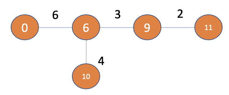 그럼 최종적으로 1번 위치에서 가장 높은 값을 가지므로 이 트리의 지름은 11이라고 판단할 수 있다. 원리는 쉬우나 이걸 떠올리기가 어려웠다. 이를 코드로 작성하면 아래와 같다.