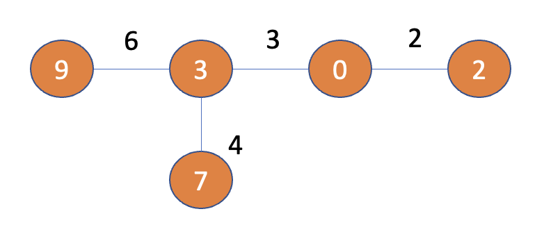 그러면 5번 노드의 위치가 가장 긴것을 확인가능하다. 이제는 5번 노드를 시작으로 각 노드별 거리를 구해본다.