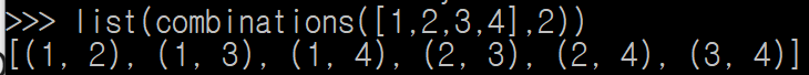 combinations([1,2,3,4], 2) 를 하면 4개의 수를 2조합으로 만들겠다는 의미다.